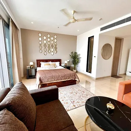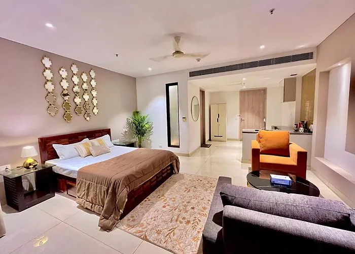 Disfruta de tus vacaciones en Gurgaon en el Apartamento Luxe Heaven Heights 15Th Patio Gurgaon. Ideal para quienes buscan una experiencia auténtica, está situado a 3 km del Rajender Clay Handicraft y a unos 15 minutos en coche de Unitech Cyber City. El apartamento de 90 m² cuenta con una piscina privada y una terraza para comodidad de los huéspedes.